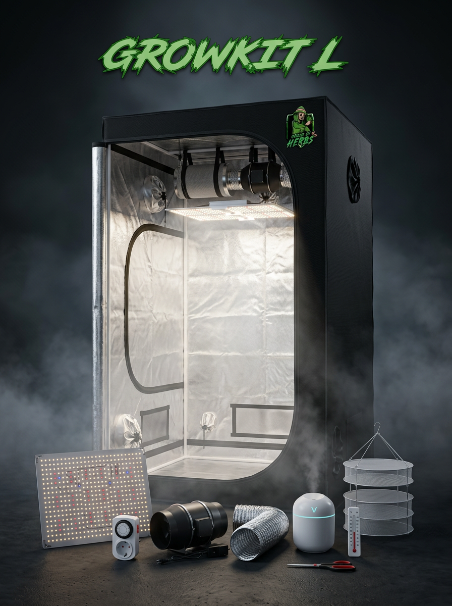 Das Zelt Set L bietet alles, was du für einen umfassenden und erfolgreichen Indoor-Cannabis-Anbau benötigst.